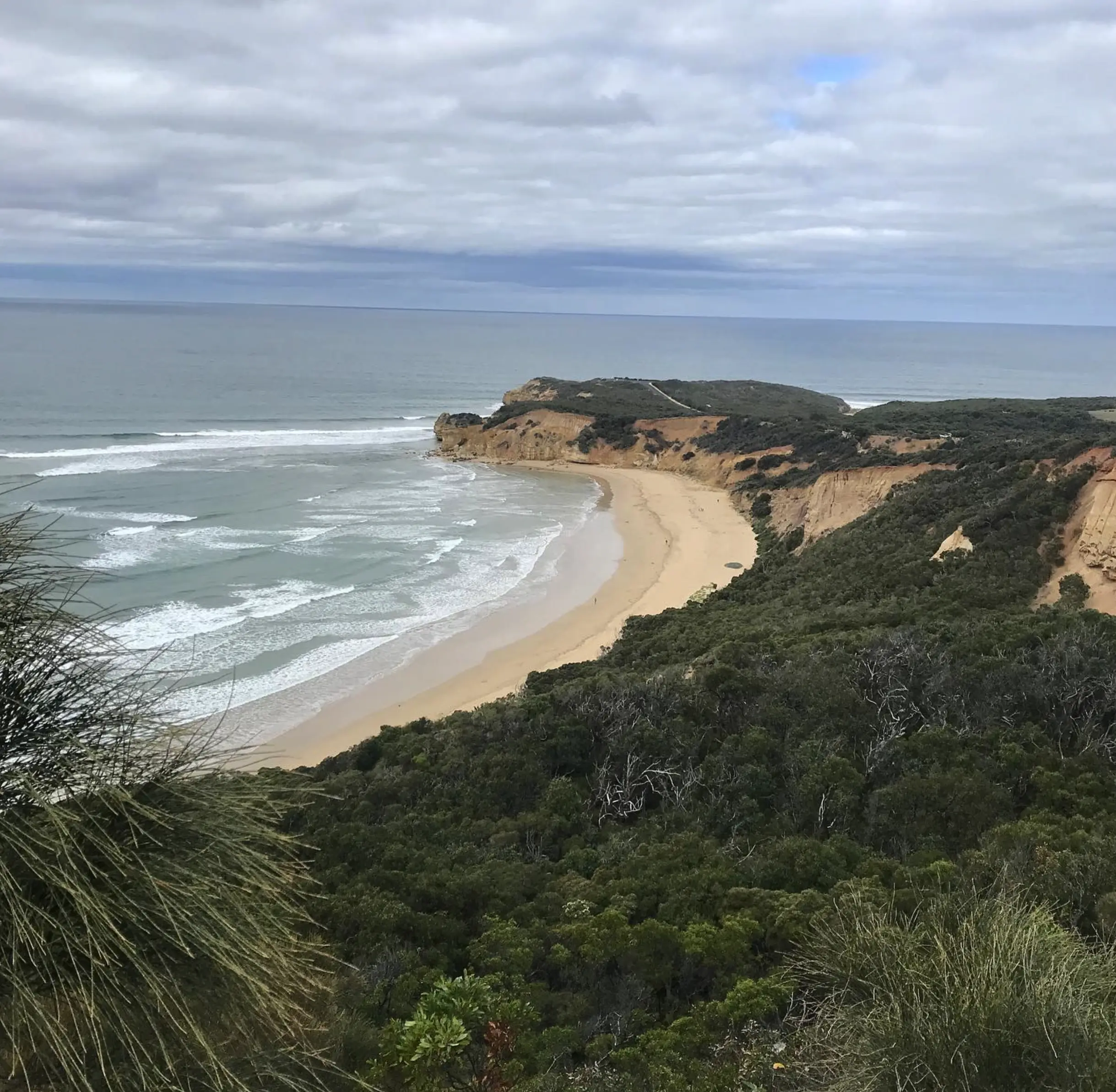 Starts from Point Addis Car Park, drops into the ironbark forest, then opens up to clifftop views across Point Addis headland and Jarosite Headlands Beach.