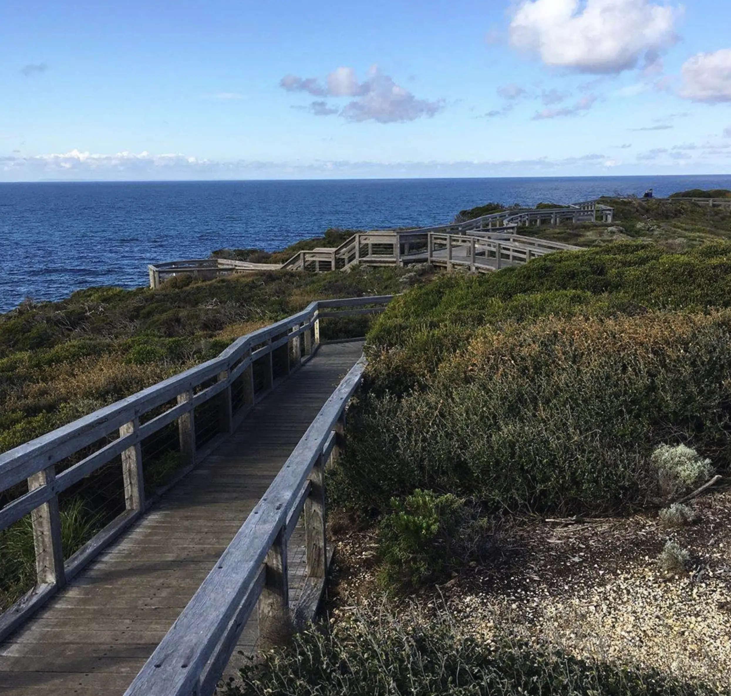 Coastal heathland Home to wallabies, Pig Face, and native vegetation Above cliffs